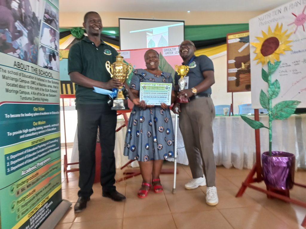 Photo 3: Overall second winner prize won by SUA for successful participation in the 2022 Nanenane Exhibitions held at Mwalimu J.K. Nyerere Ground in Morogoro, Tanzania